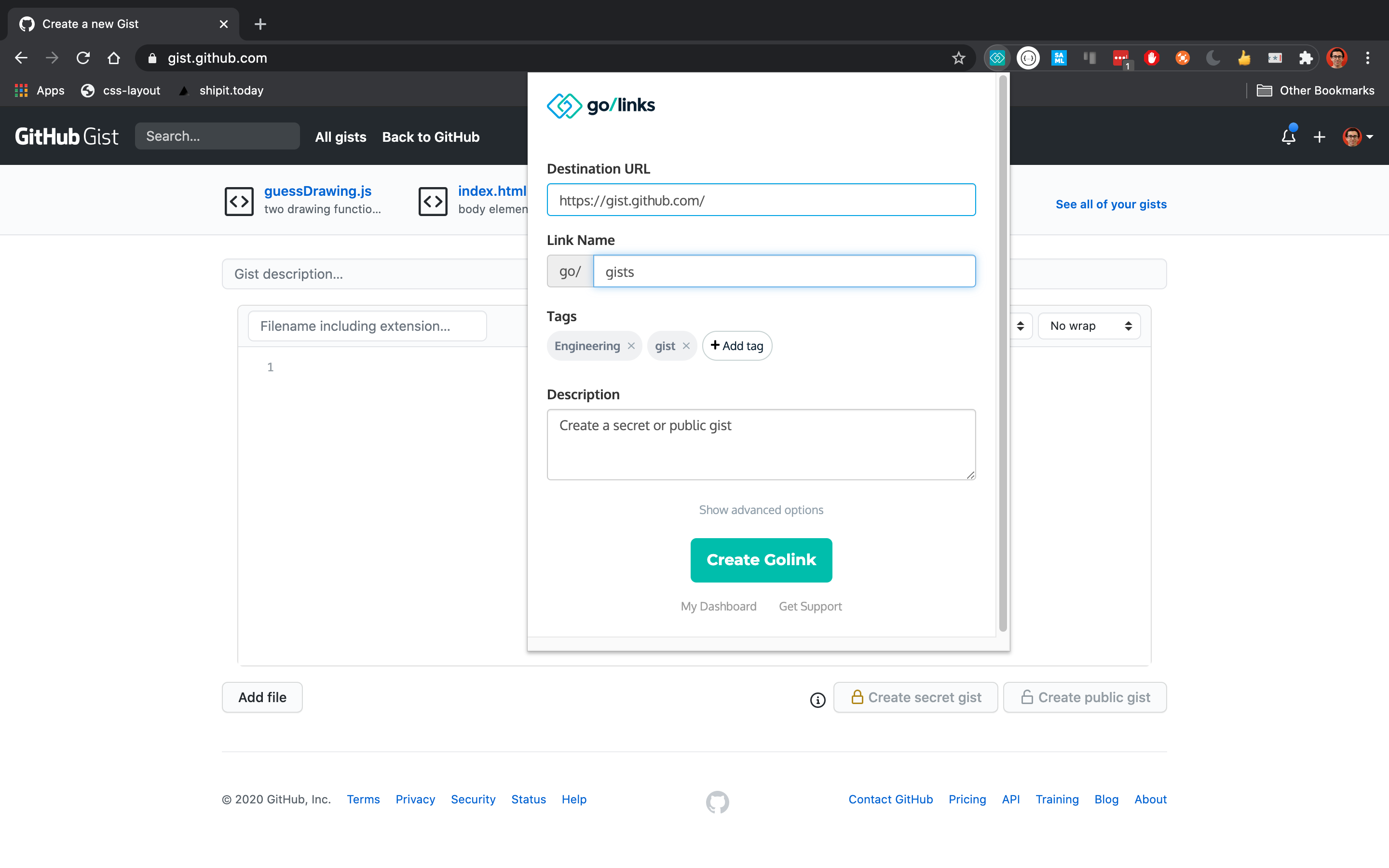 • Easily navigate to repositories - After a company has been using GitHub for a few years, the number of repositories grows substantially. This can make it challenging to quickly navigate to what you’re currently working on. With golinks, you can set up short, intuitive links for current projects. For example go/api could redirect to an API that the engineering team is developing.